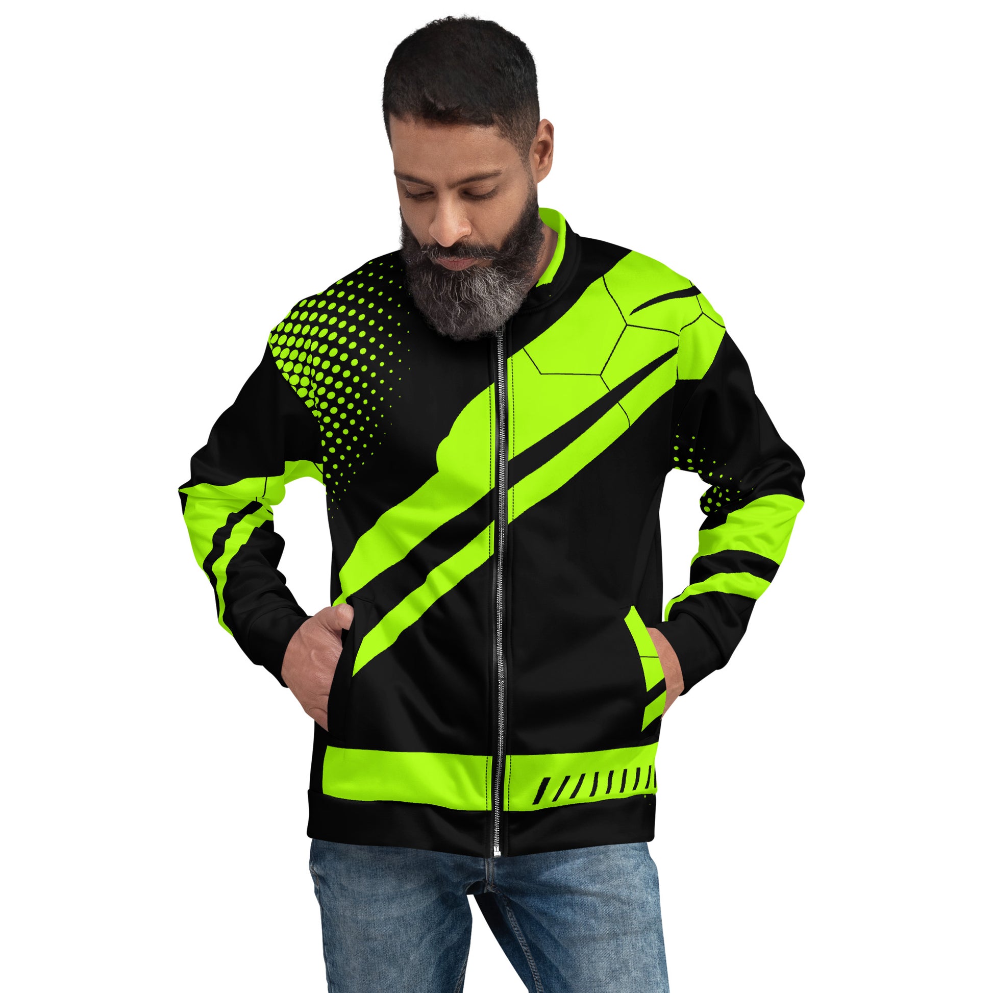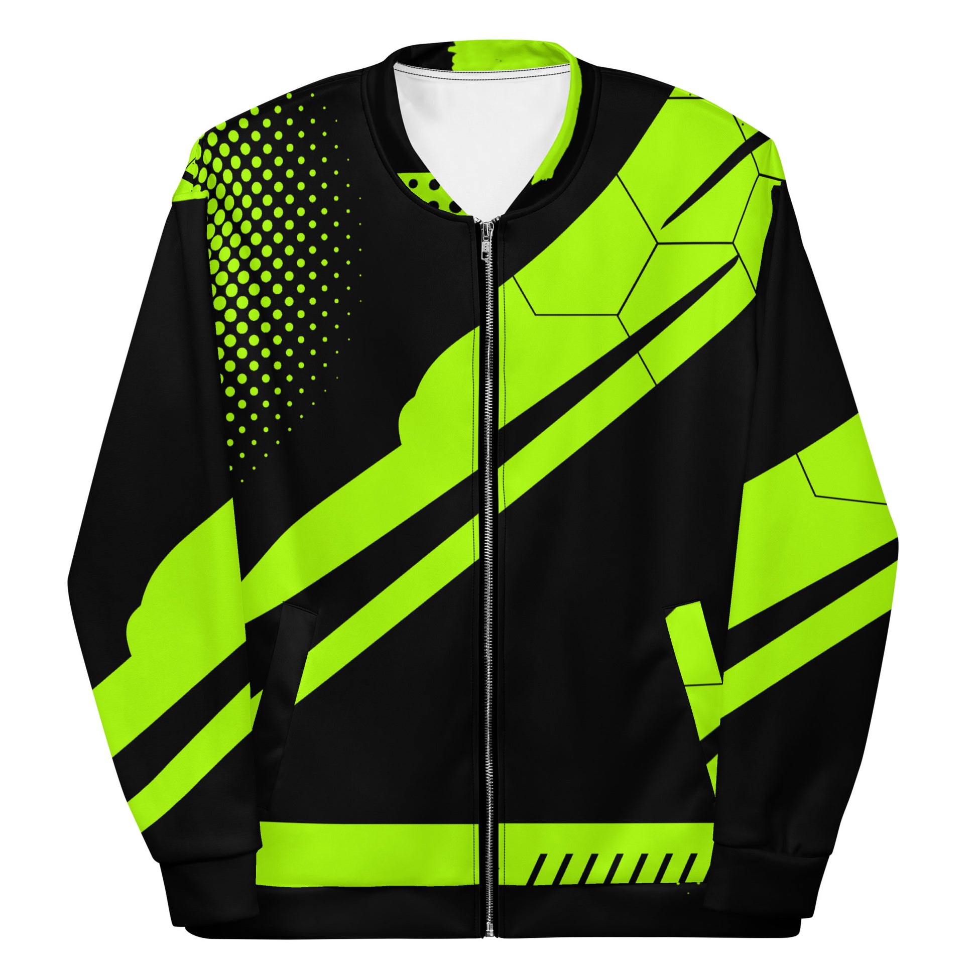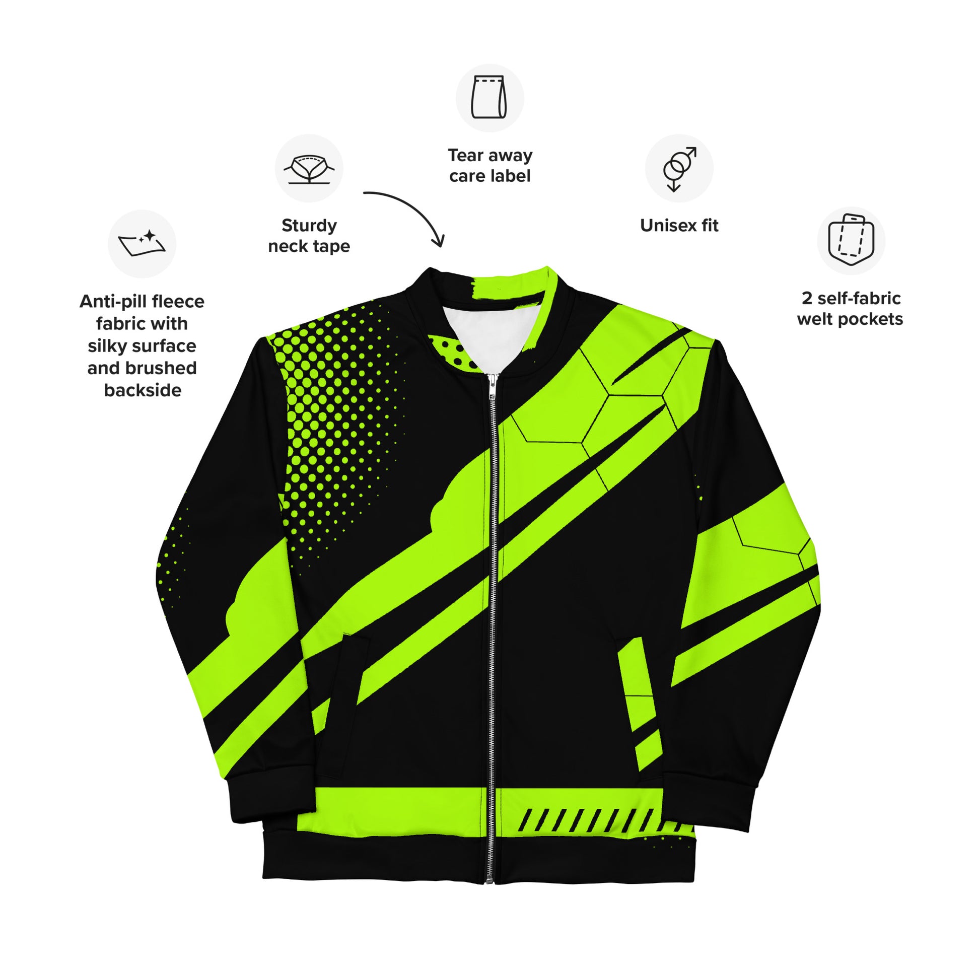 Add a little zing to your wardrobe with this vibrant All-Over Print Bomber Jacket. Wear it on a basic t-shirt, or layer it on top of a warm hoodie—it’ll look great either way. With a brushed fleece inside, and a relaxed unisex fit, this Bomber Jacket is just the stuff of the dreams, so be quick to grab yourself one!