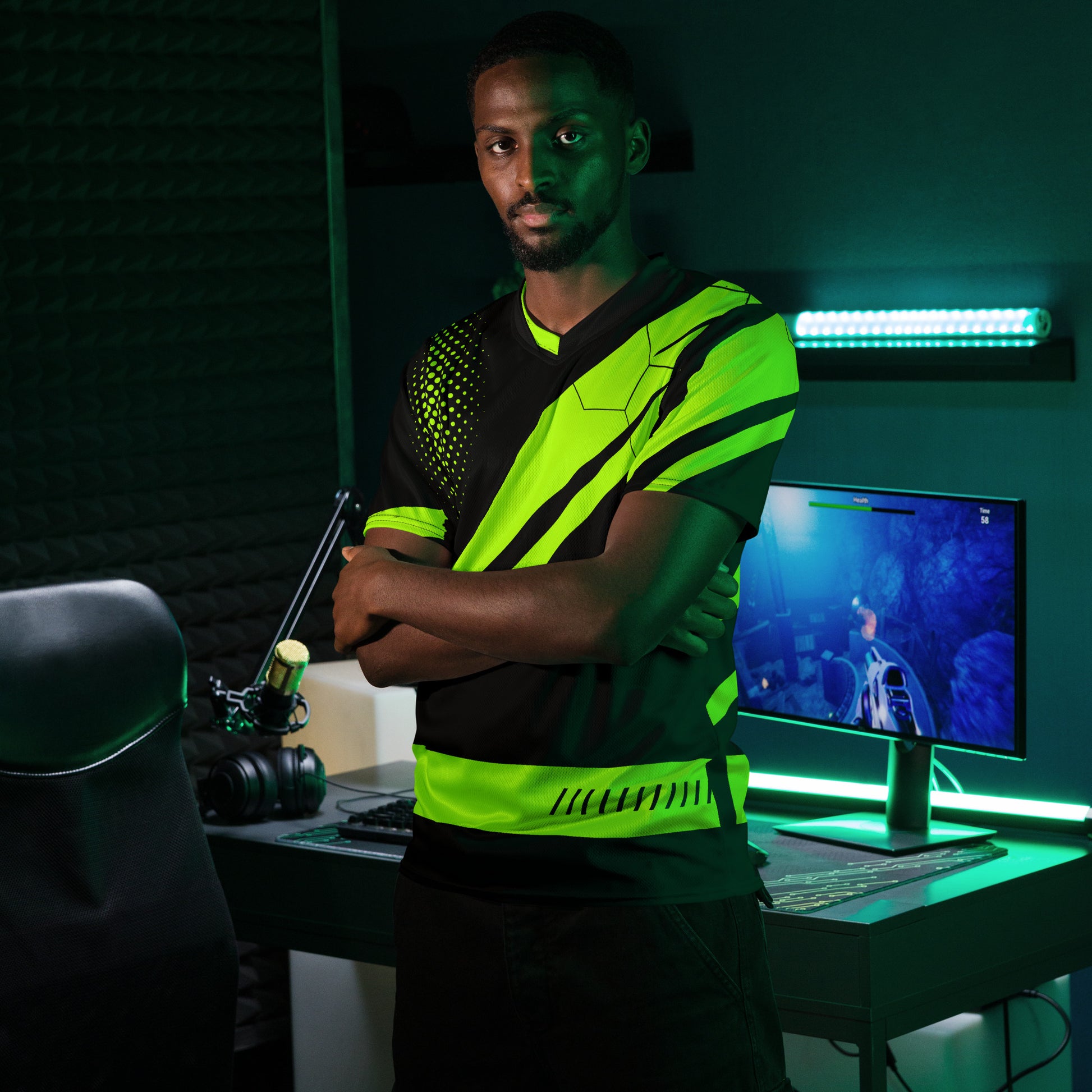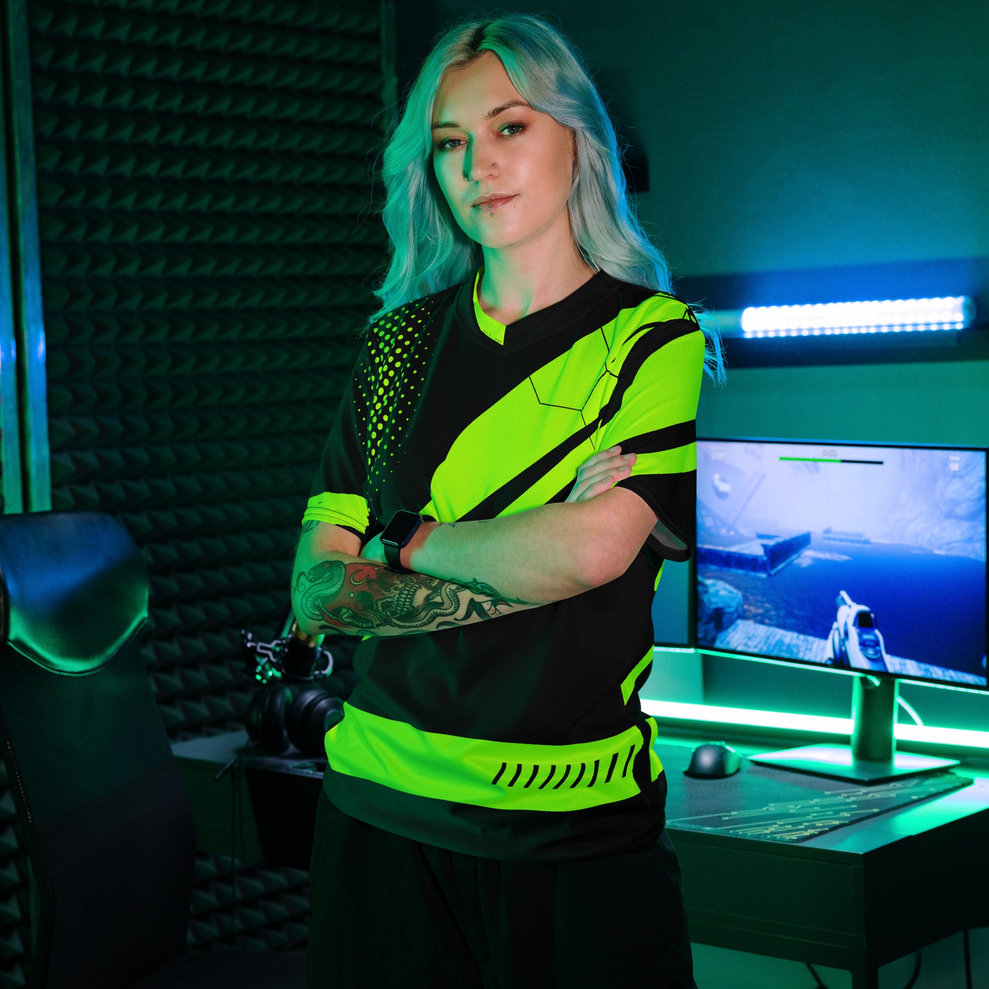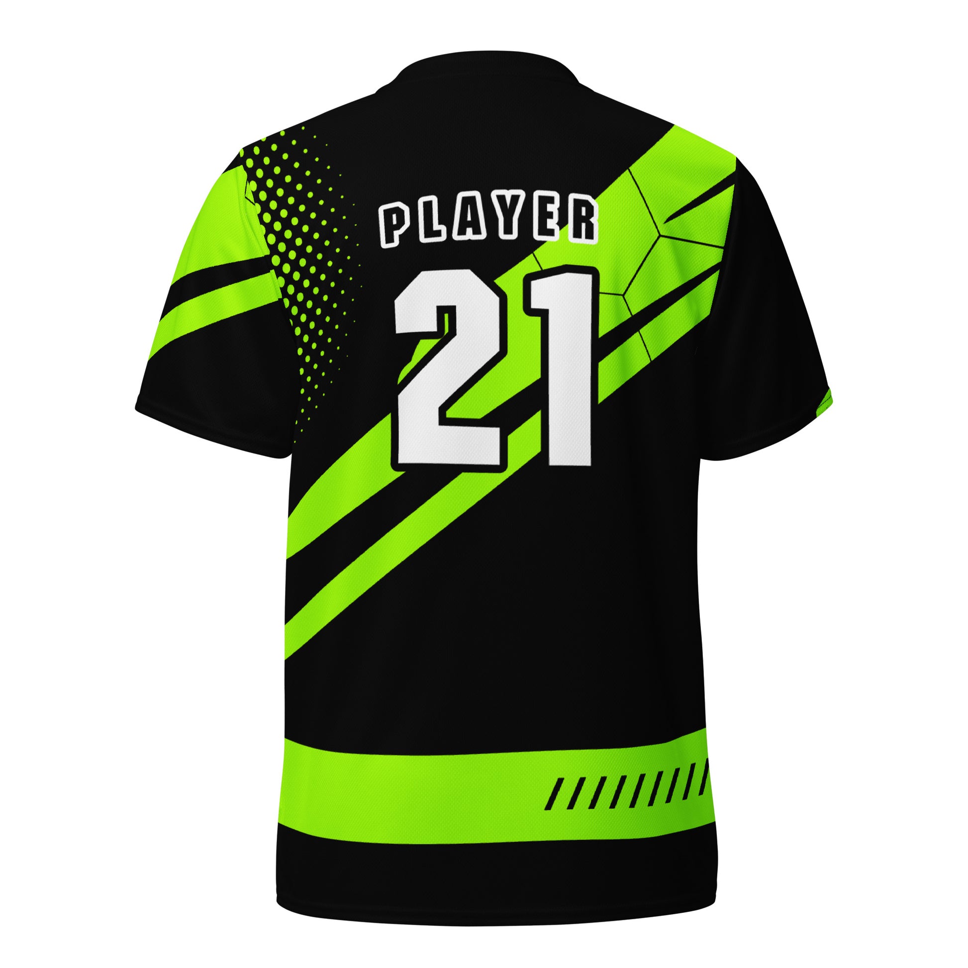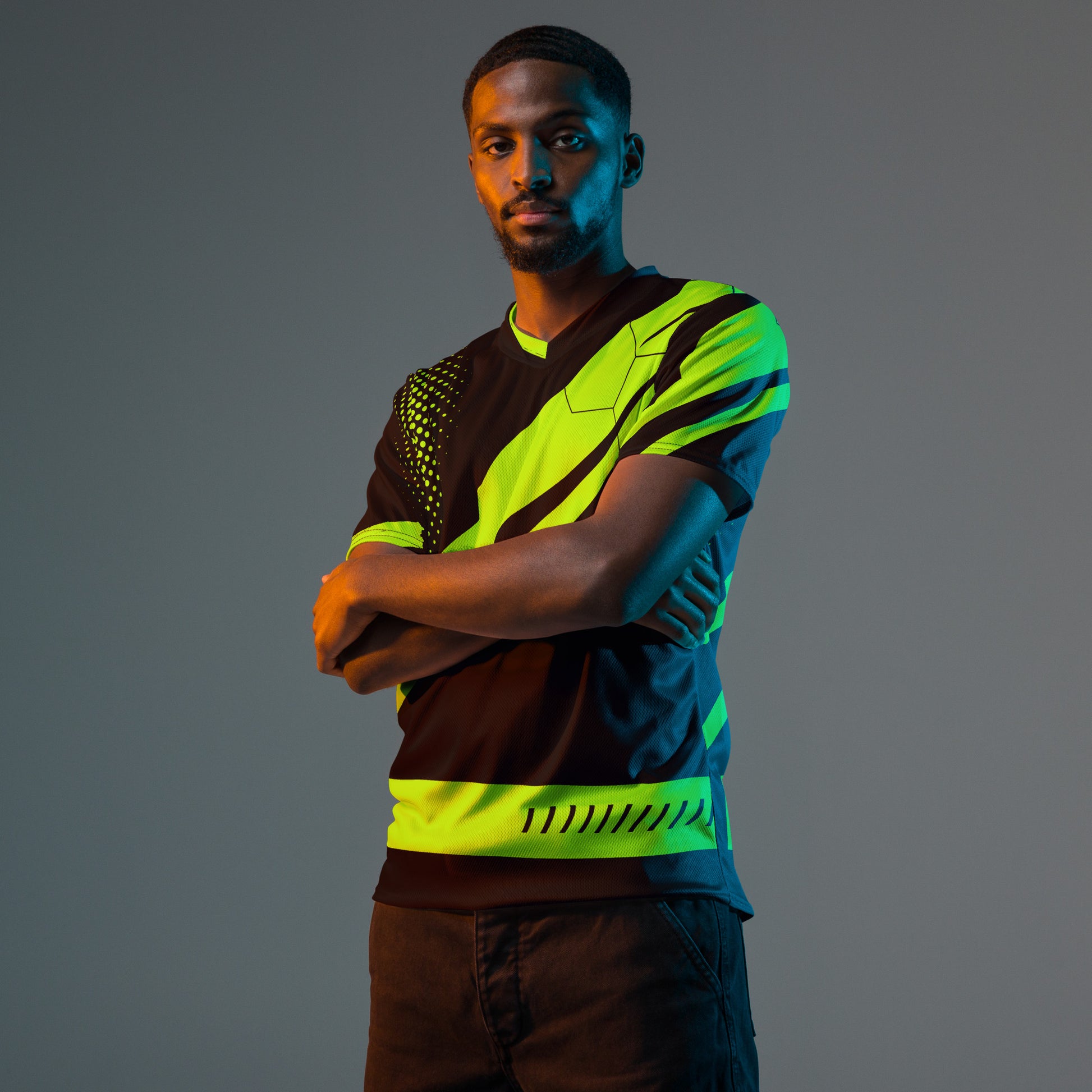 Looking for the perfect sports jersey? We have you covered—made of 100% recycled polyester fabric, this shirt is breathable, moisture-wicking, and has a double-layered v-neck collar that creates a premium look.