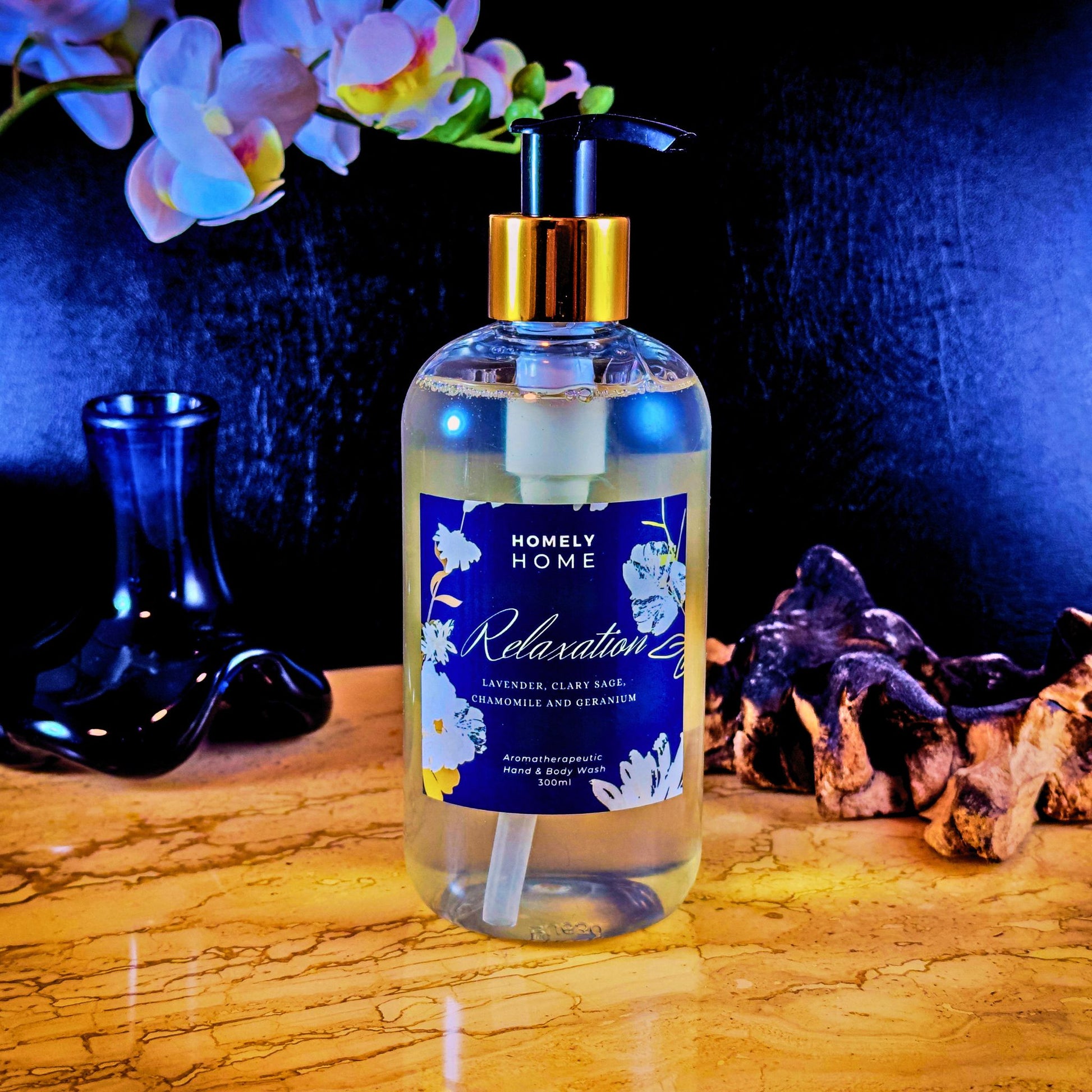 Oplev essensen af ren afslapning med Homely Home's Relaxation aromaterapeutiske Hånd og kropssæbe.